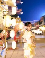 毛晓彤在镜头前的表现力也为这组作品注入了灵魂。她并未刻意摆出疏离的古典姿态,而是将现代女孩的活泼灵动自然融入古风情境。照片捕捉到了她许多生动的瞬间:看到新奇灯饰时睁大的双眼、品尝小食时满足的偷笑、穿行人群中回眸寻找镜头的俏皮,以及静静赏灯时那片刻的宁静与温柔。这种真实而生动的情绪流露,打破了时空的隔阂,让观者不仅能欣赏到一幅美丽的古风画卷,更能感受到画中人鲜活的生命力与游玩的乐趣,产生了强烈的代入感与共鸣。