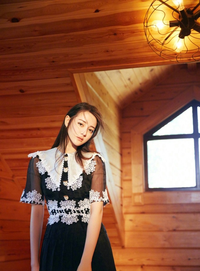 迪丽热巴黑白拼接裙装演绎现代名媛风